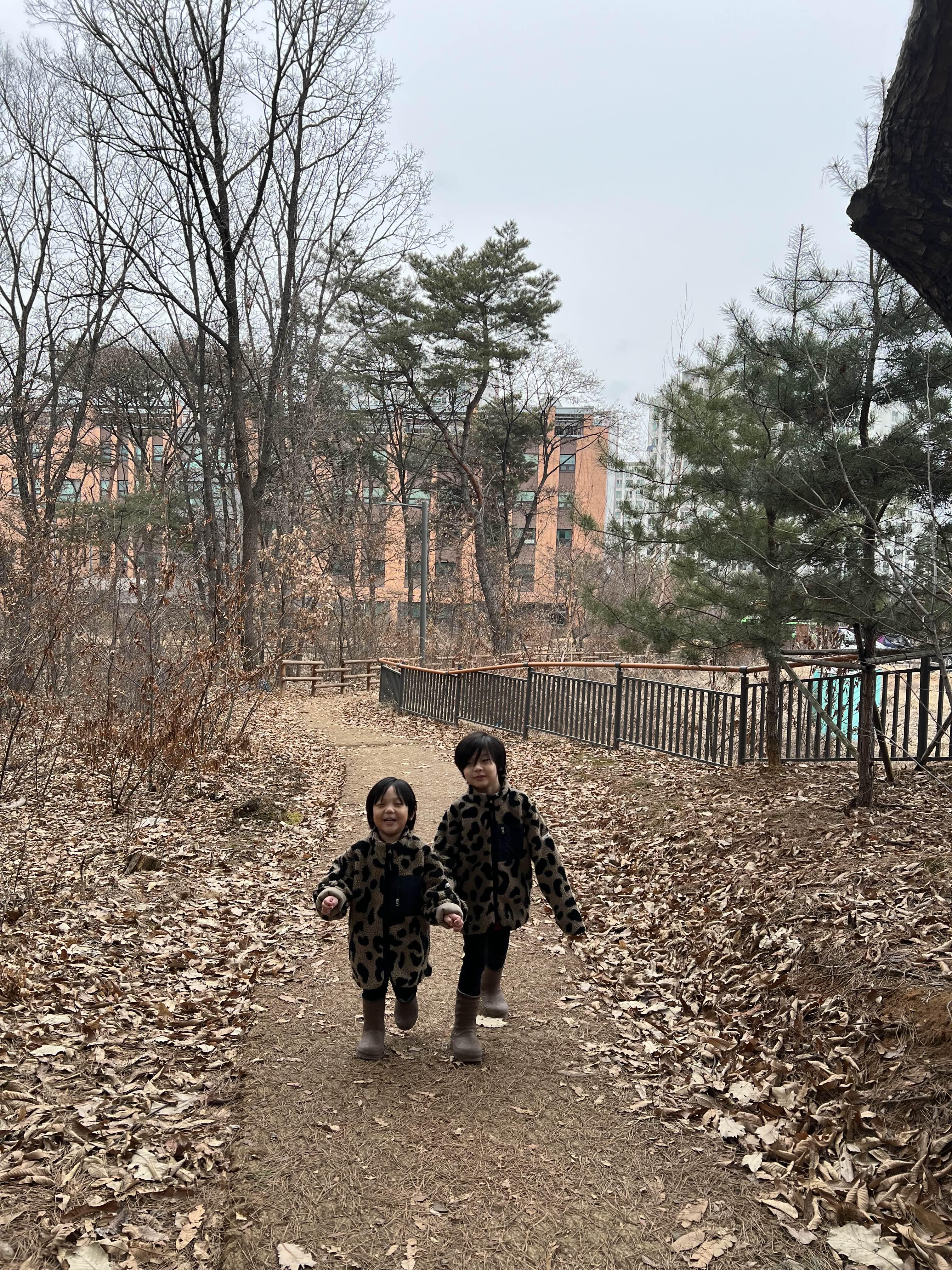 아파트 단지지나고, 숲길도 지나서