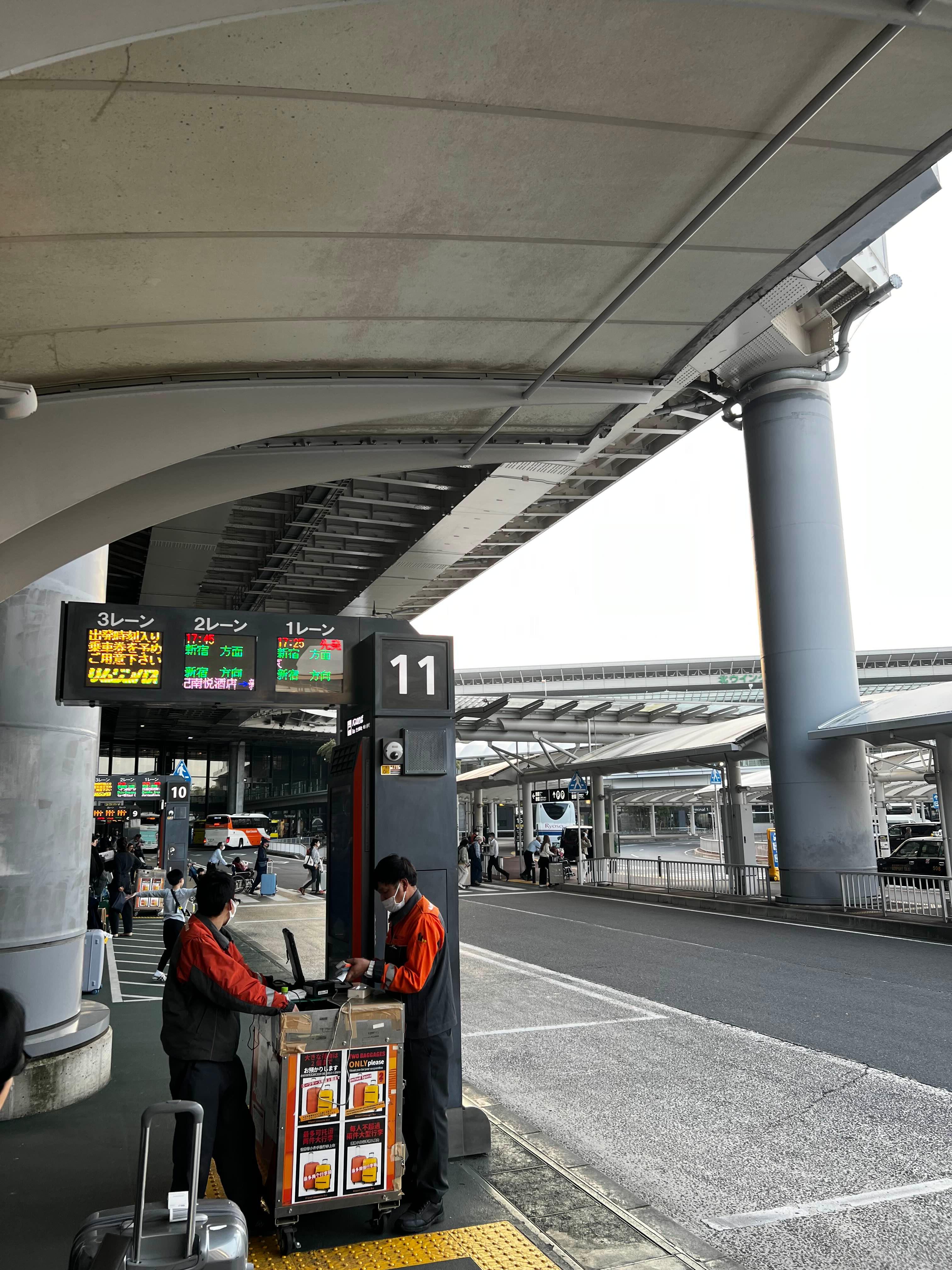 버스 승강장마다 일하시는분들이 저렇게 계시고, 캐리어도 실어 주신다.